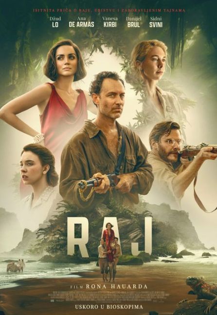 „Raj“ je svetsku premijeru doživeo još prvih dana septembra prošle godina na uvek prestižnom TIFF-u (Međunarodnom filmskom festivalu u Torontu), a tek sada stupa u redovnu bioskoosku distribuciju (u Americi je krenuo prošle sedmice). Bez obzira na to, iskusnije i prefinjenije filmofile, sva je prilika, ne treba ubeđivati da daju poštenu gledalačku šaansu novom fiolmu sa rediteljskim potpisom zaslužno cenjenog veterana američkog i svetskog filma, Rona Hauarda. On nam je podario odlične filmove, kao što su „Apolo 13“, „Novine“, „Ucena“, „Vilou/Vrba“, „Frost / Nikson“, „Trka života“, „Povratni udar“, „U srcu mora“, „Čaura“, „EDTV“, a tu su i svakako prepoznatljiva ostvarenja „Blistavi um“, „Davinčijev kod“, „Anđeli i demoni“, „Nestale“… On je ovde okupio zvučnu gluumačku podelu koju predvode: Džud Lo, Ana de Armas, Vanesa Kirbi, Danijel Brul („Zbogom, Lenjine“, „Alijenista“, „Trka života“), Sidni Svini, Džonatan Titel (Kraj je***og sveta“, „Osmi putnik: Zemlja“). Radnja filma se zbiva na Galapagosu, a sniman je u Australiji.