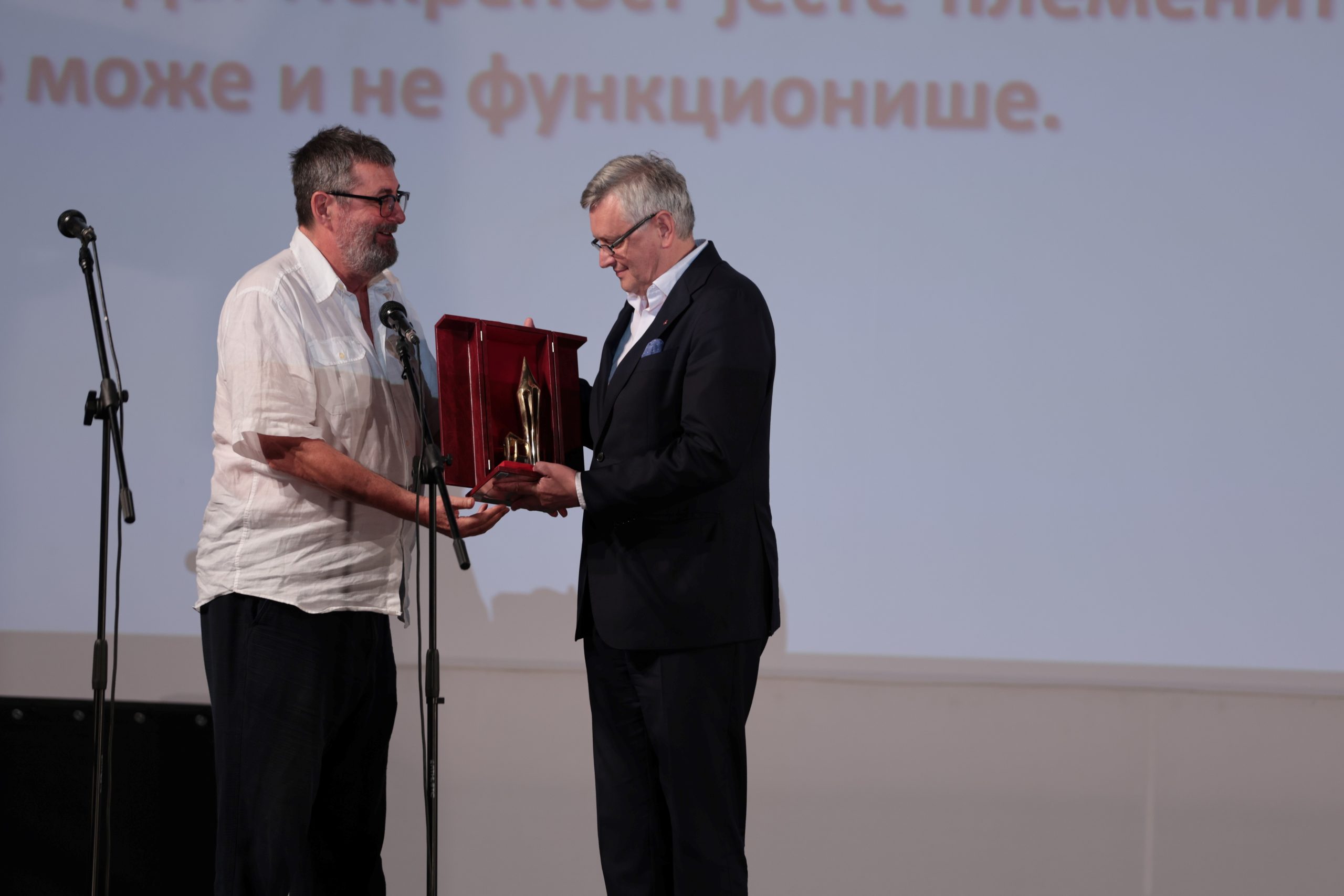 Sergej Loznica je primio nagradu na Letnjoj pozornici i tom prilikom rekao: „Ovo je velika čast za sve nas koji smo učestvovali u stvaranju ovog filma. Ovde se radi o kreativnom timu ljudi koji dolaze iz šest zemalja; to je pravi evropski film. Na setu sam mogao da čujem osam različitih jezika i volim što je to tako. Jer kao i ovde na festivalu, svi dolaze iz svoje kulturološke sredine. I sjajno je kad sve ove različite kulture ujedinimo u kreativnom procesu. Hvala vam“.