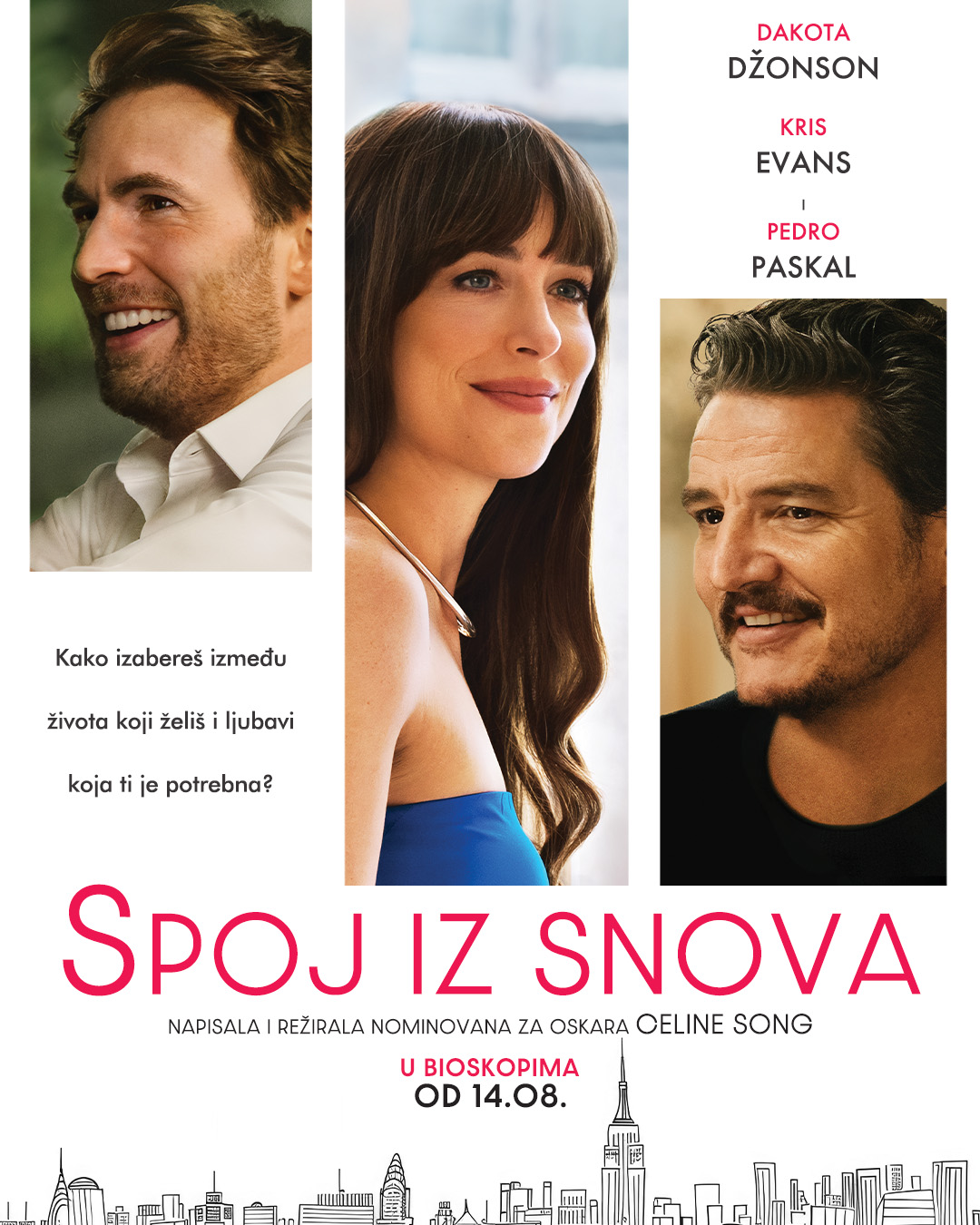 Jučer Film Srbija saopštava ovo – Scenaristkinja i rediteljka, Selin Song, čije ostvarenje „Prošli životi“ (Past Lives) je osvojilo kritiku i publiku širom sveta, sada donosi novi film „Spoj iz snova“ (The Materialists), koji zahvaljujući distributerskoj kući Jučer dolazi u naše bioskope pretpremijerno 13. avgusta, dok će u redovnoj distribuciji u svim bioskopima biti dostupan od 14. avgusta.